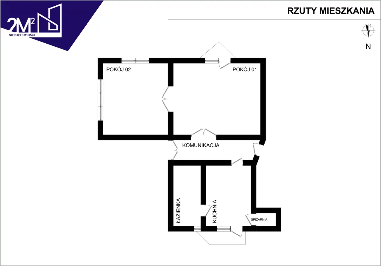 Mieszkanie znajduje się na drugim piętrze i składa się z dwóch przechodnich pokoi. Część mieszkalna jest oddzielona od kuchni i łazienki komunikacją (korytarzem który stanowi współwłasność 1/2 z sąsiednim mieszkaniem).
