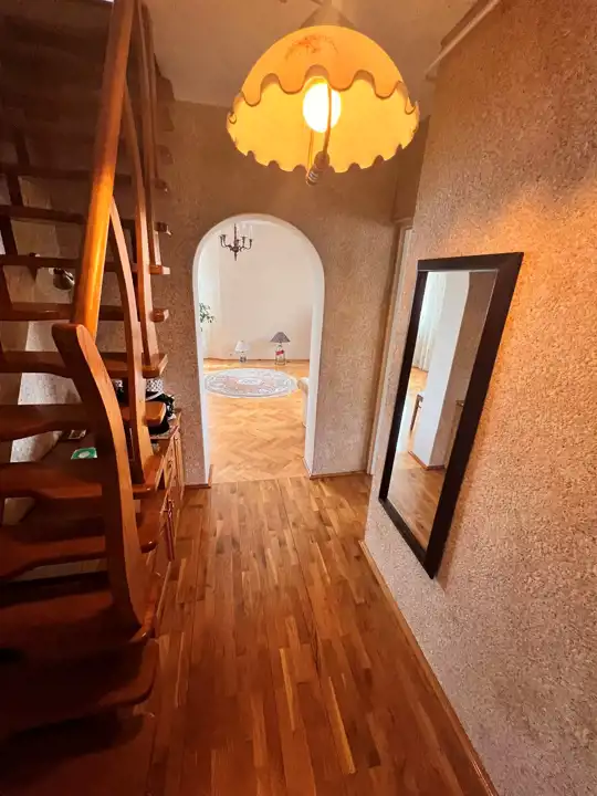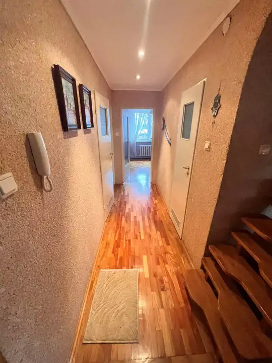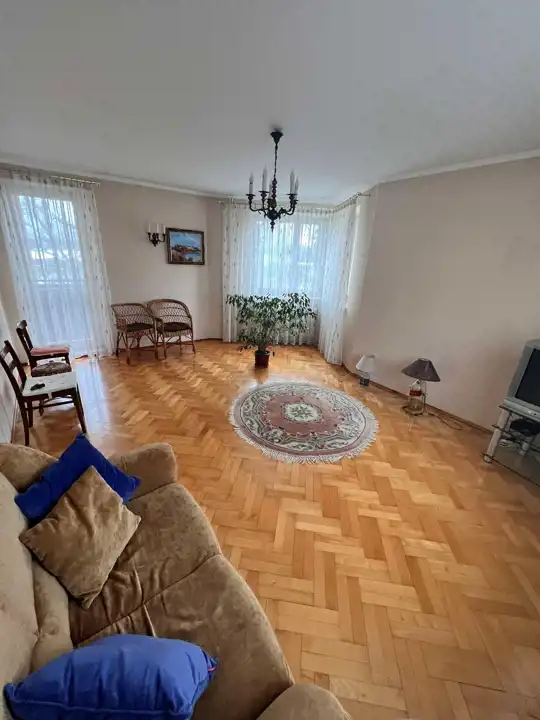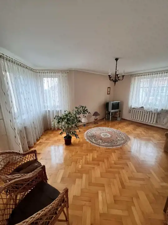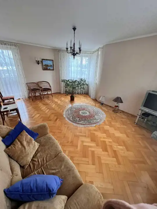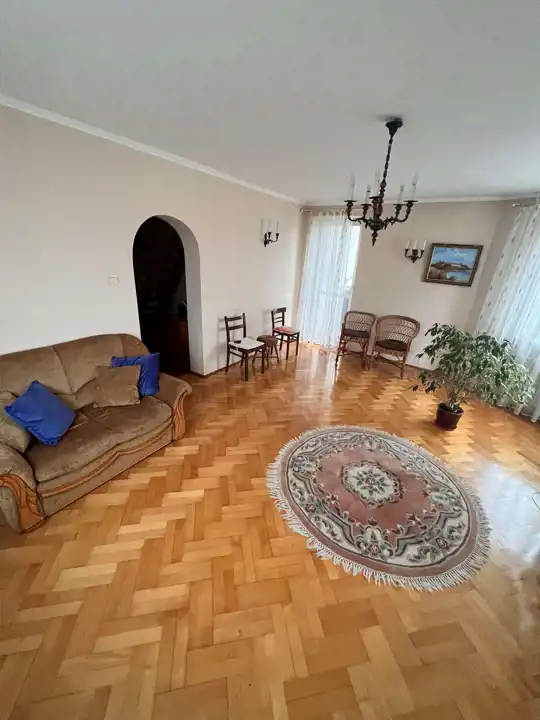 Składa się z przestronnego salonu , trzech sypialni, łazienki i WC oraz przedpokoju, garderoby.