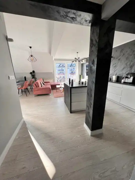 W tym apartamencie zadbano o każdy najmniejszy szczegół, a wykończone zostało materiałami z najwyższej półki, między innymi: