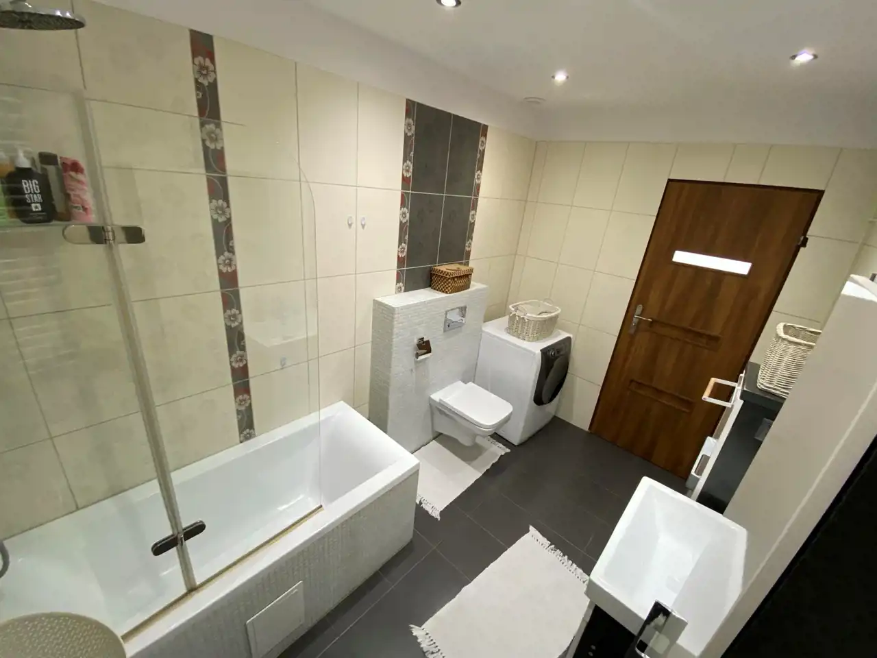 To także idealny wybór dla rodzin z dziećmi – obok dworku , z możliwością kontroli pociech z własnego okna znajduje się ogrodzony bezpieczny płac zabaw .Busik szkolny podjeżdża po dzieci i odwozi po zajęciach do domu.