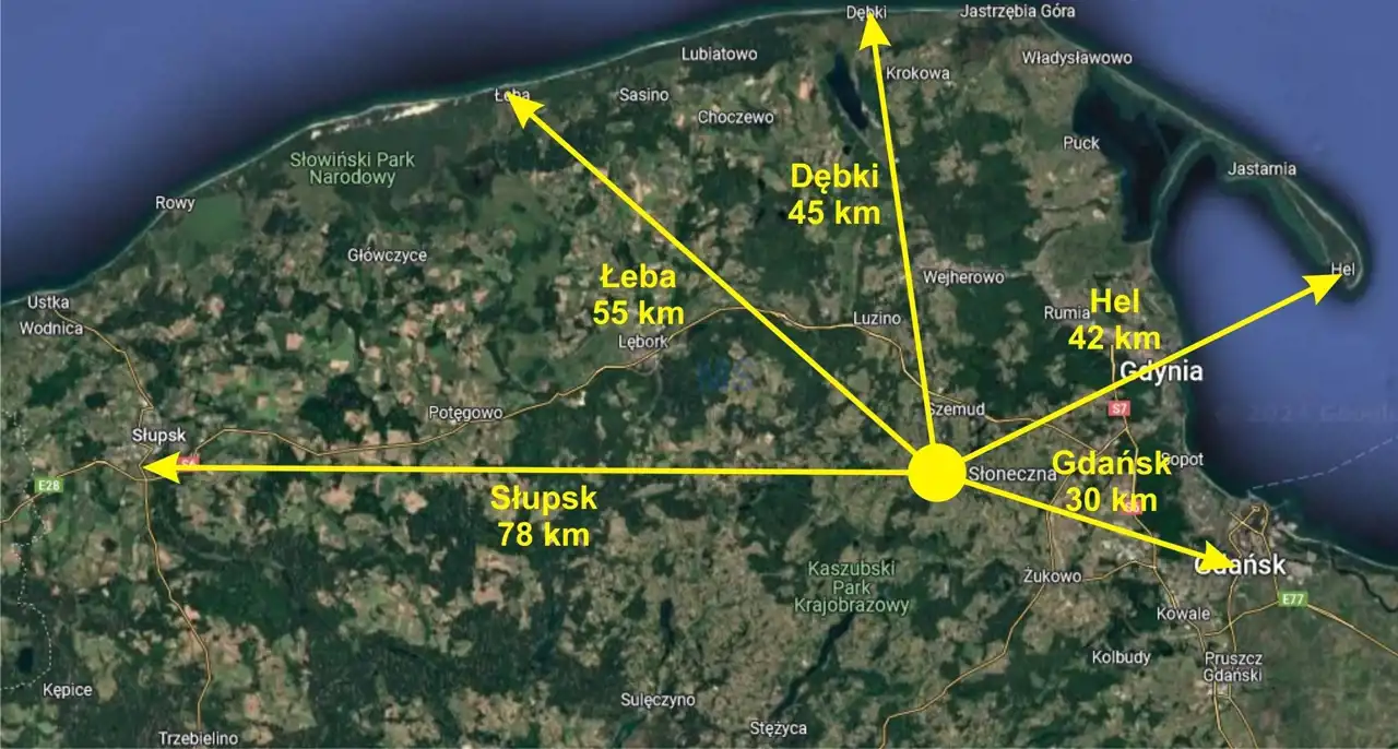 Jednocześnie lokalizacja zapewnia doskonały dojazd do Gdańska, Gdyni, Sopotu i na całe Kaszuby – zarówno autem, jak i komunikacją publiczną.