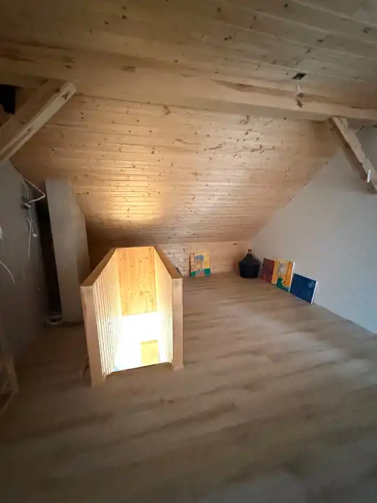 Poddasze zostało zaadaptowane przez właściciela na 5 niezależnych pokoi oraz hol, co daje duże możliwości aranżacyjne -idealne rozwiązanie dla większej rodziny, pod działalność lub wynajem pokoi.
