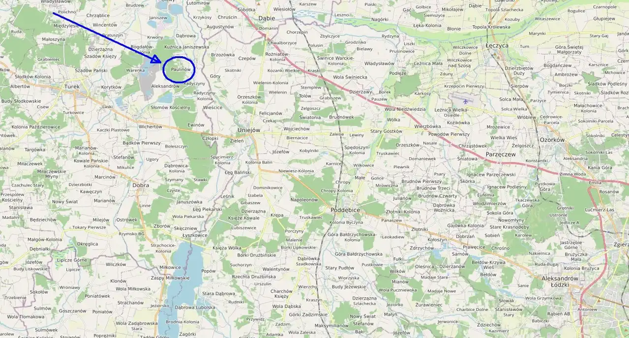 Uwaga: ok.14 km do Uniejowa , ok. 88km do Łodzi