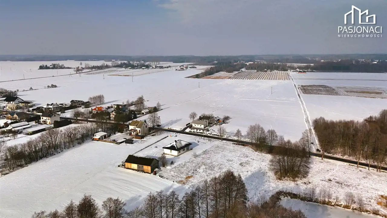 - Lokalizacja: pierwsza linia zabudowy, bezpośrednio przy mało ruchliwej, asfaltowej drodze