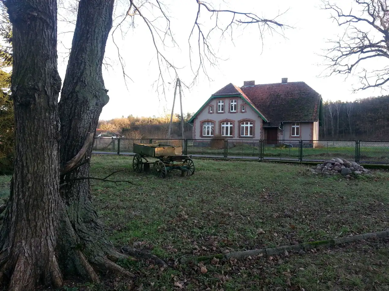 Budynek mieszkalny- (dawna szkoła)-pensjonat i stajnia – ogrodzone częściowo siatką i panelami ogrodzeniowymi