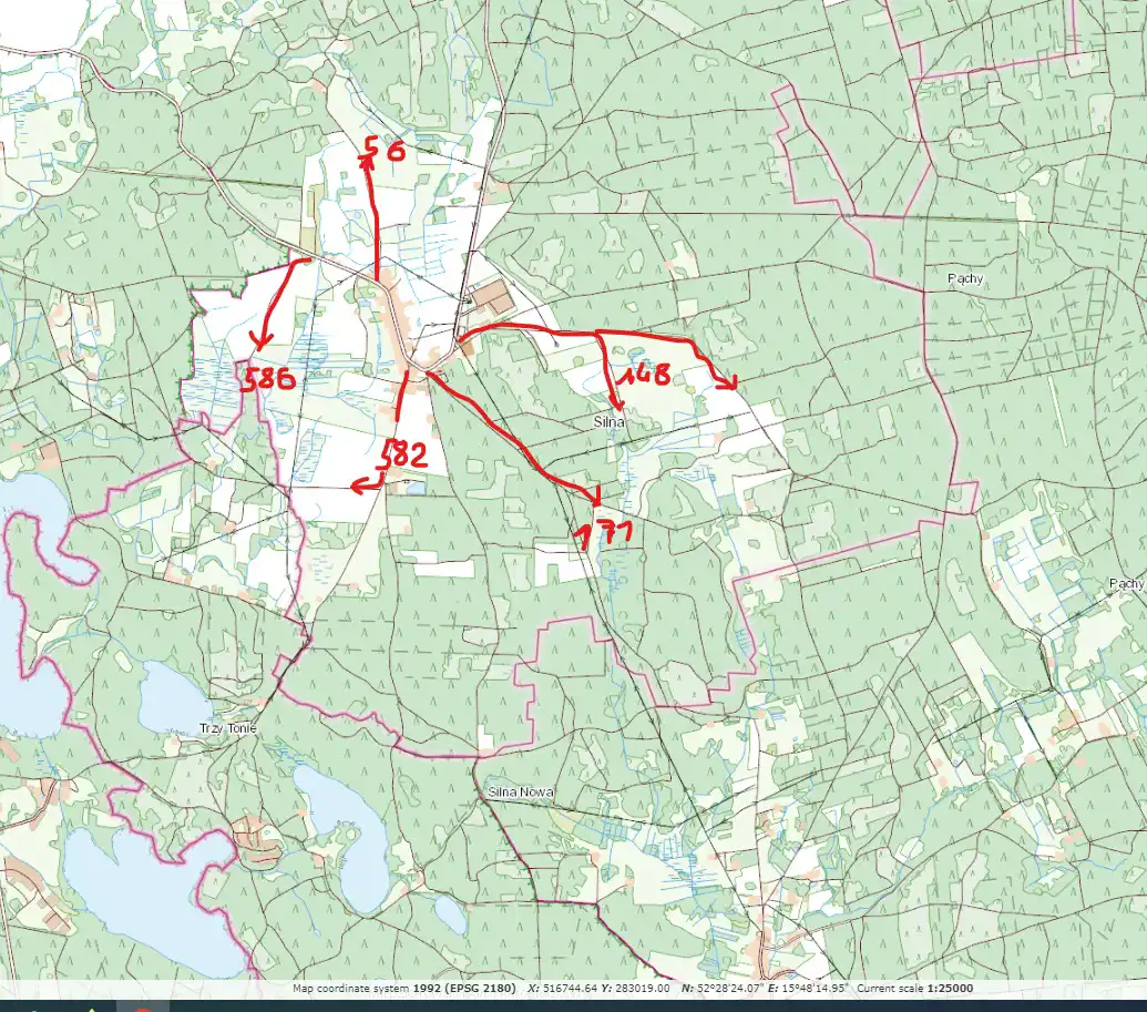 Dobre działki w Silnej! Kilkanaście działek budowlanych ( po 3 -3,4 tys. m2) do sprzedaży, cena do niewielkiej negocjacji. Przeznaczenie na budownictwo całoroczne o charakterze letniskowym (80 % powierzchni działki biologicznie czynne) w cenie 33 zł za m2. Obowiązuje mpzp dla Gminy Pszczew. Dopuszczalna zabudowa, parter, piętro, dach skośny z poddaszem do 13 m wysokości w kalenicy. Działki z dostępem do drogi publicznej przez drogę prywatną wewnętrzną. Położone wśród lasów, w otulinie parku krajobrazowego. Szczegóły w mpzp nr 018, załącznik nr 18. Link: http://pszczew.e-mapa.net?userview=31 , http://pszczew.e-mapa.net?userview=32 . Uwaga! działki mogą być dzielone na mniejsze (po 1500 m2) i zachowują status działek budowlanych.