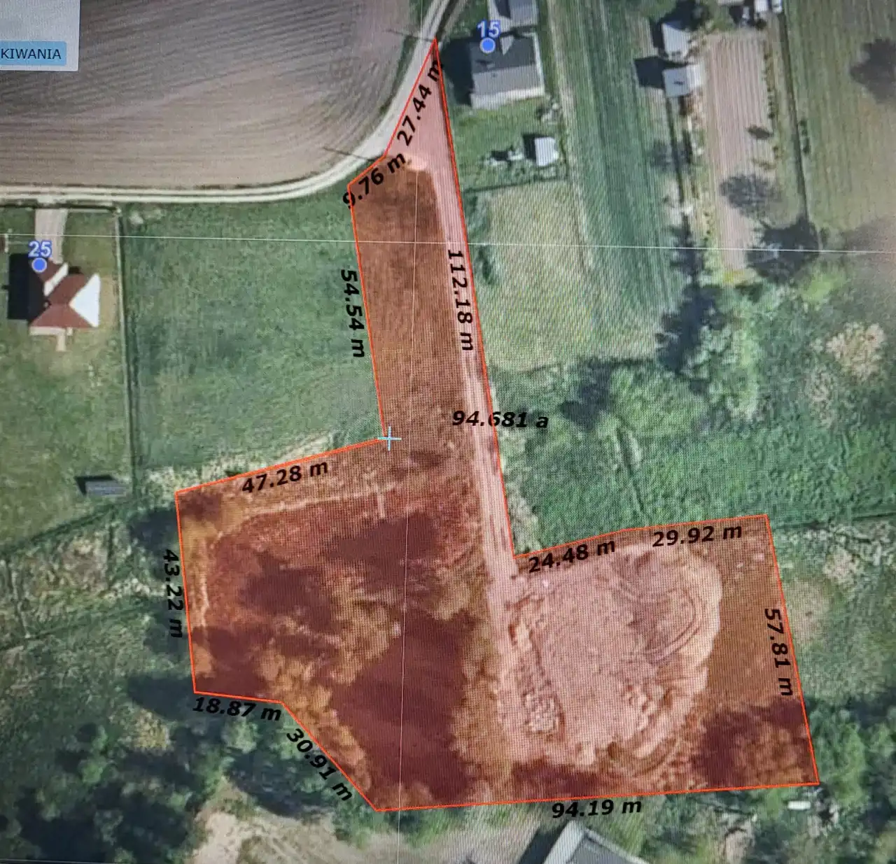 Kolejna działka 1990/81 o powierzchni około 8500 m2 - ma zapewniony dojazd poprzez wydzieloną drogę z działki 1989/81. Droga utwardzona dzięki czemu możemy przemieszczać się samochodami ciężarowymi.