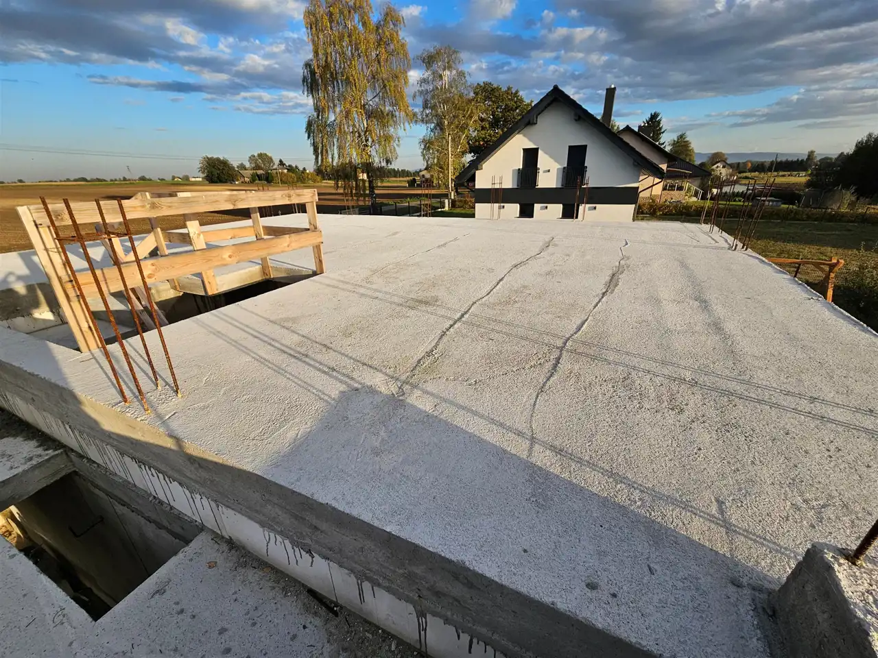 Na działce rozpoczęto budowę zgodnie z projektem: wykonana płyta fundamentowa, wymurowana została pierwsza kondygnacja wraz ze ścianami działowymi, wykonany strop.
