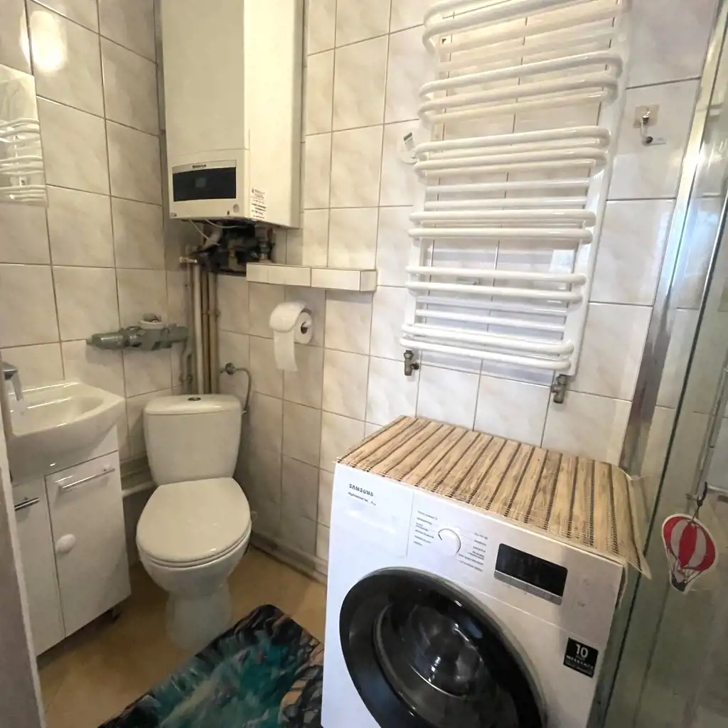 Mieszkanie składa się z dwóch pokoi, z których jeden jest przechodni, a drugi duży ok 35m2 co daje różnorodne możliwości aranżacyjne. Przechodnia kuchnia jest funkcjonalna i dobrze doświetlona, umożliwiając wygodne przygotowywanie posiłków. Łazienka niewielka jednak wyposażona w WC, prysznic i umywalkę zapewnia komfort codziennego użytkowania.