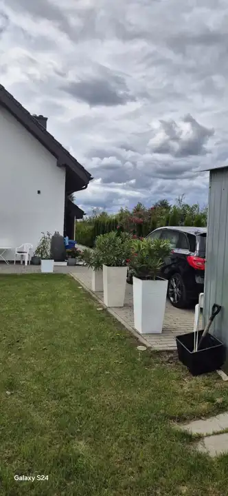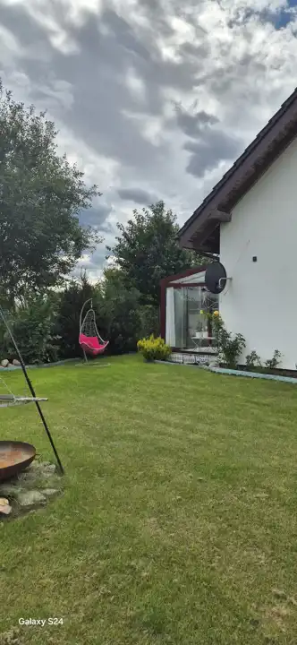 - Poddasze (32 m²): sypialnia, łazienka, toaleta z prysznicem.Dom ogrzewany jest nowoczesnym piecem elektrycznym Kospel (3 fazy), z możliwością podłączenia gazu – instalacja gazowa przebiega w drodze. Dostępna jest woda miejska, dodatkowo licznik ogrodowy, a także szambo o pojemności 10 000 m³.