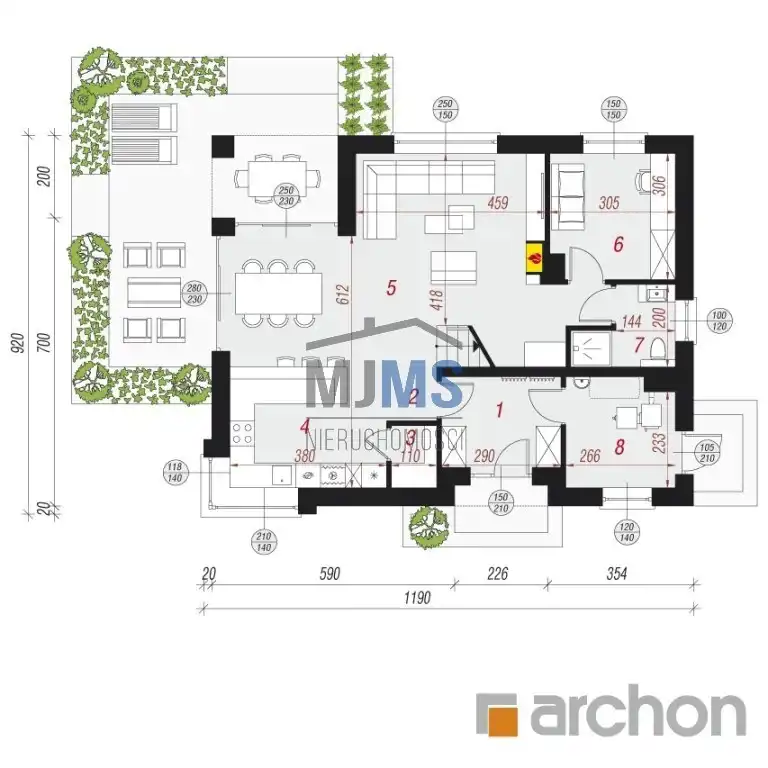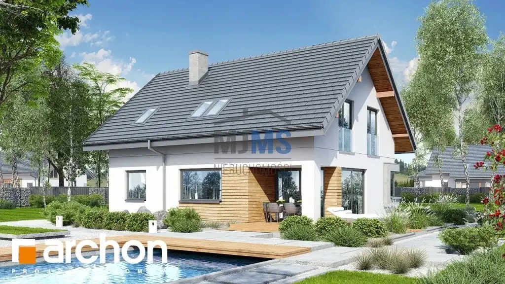 Dom o powierzchni całkowitej 205,92m2, użytkowej 138,76m2 z działką 1010m2, otoczony zielenią i przyrodą, dwukondygnacyjny z poddaszem użytkowym, dużym, narożnym tarasem i podjazdem to wymarzone miejsce do życia dla całej rodziny ceniącej komfort, przestrzeń, wygodę oraz bliskość natury.
