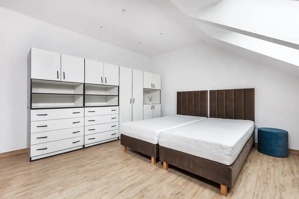 Oferta dotyczy mieszkania 2-poziomowego na piętrze z pięcioma pokojami, kuchnią, łazienką, korytarzem, garderobą, wc i dużym balkonem. Mieszkanie jest oferowane w stanie wykończonym.
