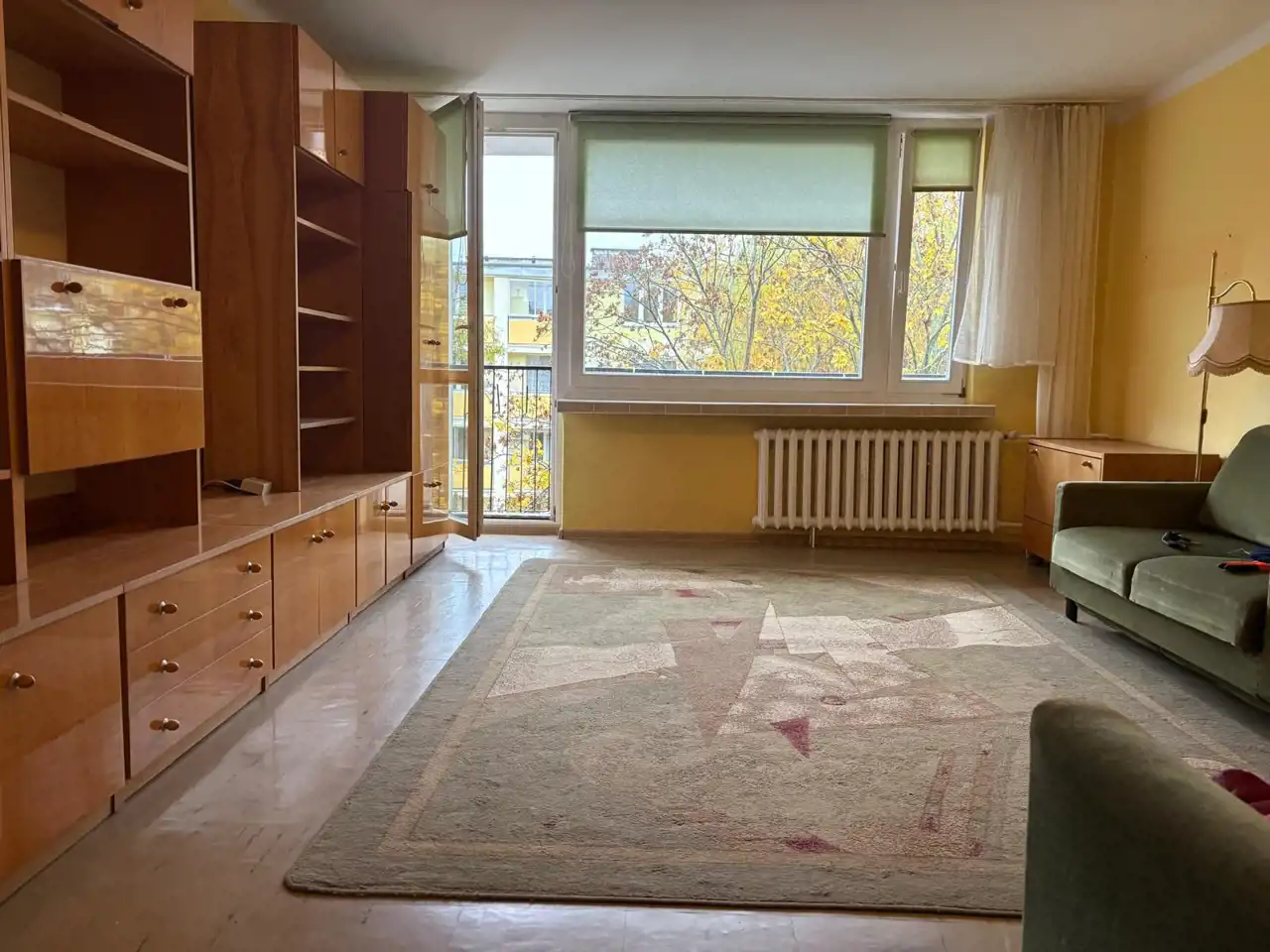 salon z wyjściem na duży balkon