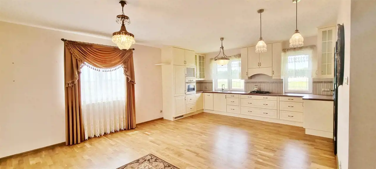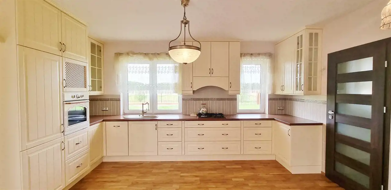 Nieruchomość do zamieszkania, wykonana zabudowa szafek kuchennych na zamówienie oraz nowy nieużywany sprzęt AGD (lodówka Samsung, piekarnik Gorenje, płyta gazowa freggia), szafy w zabudowie.