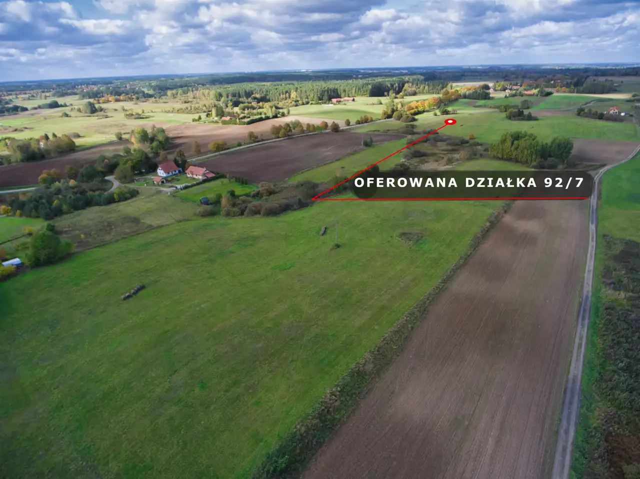 Oferowana działka zlokalizowana jest w odległości ok 100 m od drogi gminnej, w której przebiega wodociąg oraz sieć elektroenergetyczna. Działka położona jest w malowniczych terenach - w promieniu 5 km znajdziemy kilka zbiorników wodnych (w tym np. Jezioro Serwent) oraz wiele lasów cieków wodnych i szlaków.