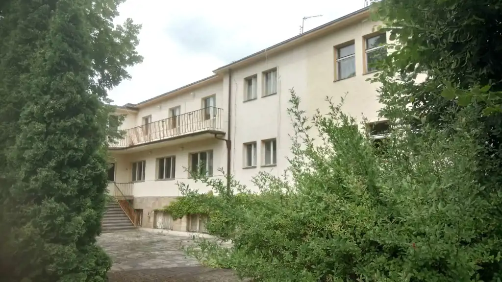 Główny budynek trzy kondygnacyjny o powierzchni 1850m2 składa się z ok. 40 pokoi, sal konferencyjnych wraz z pomieszczeniami gastronomicznymi , zapleczem sanitarnym oraz kotłownią.