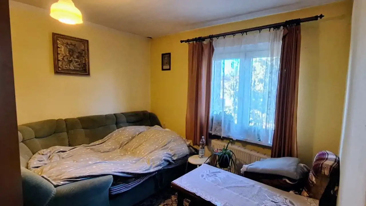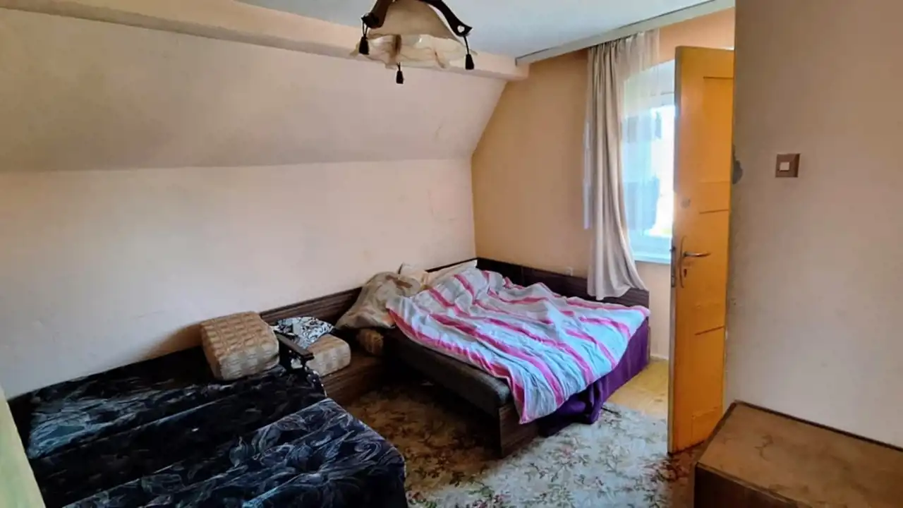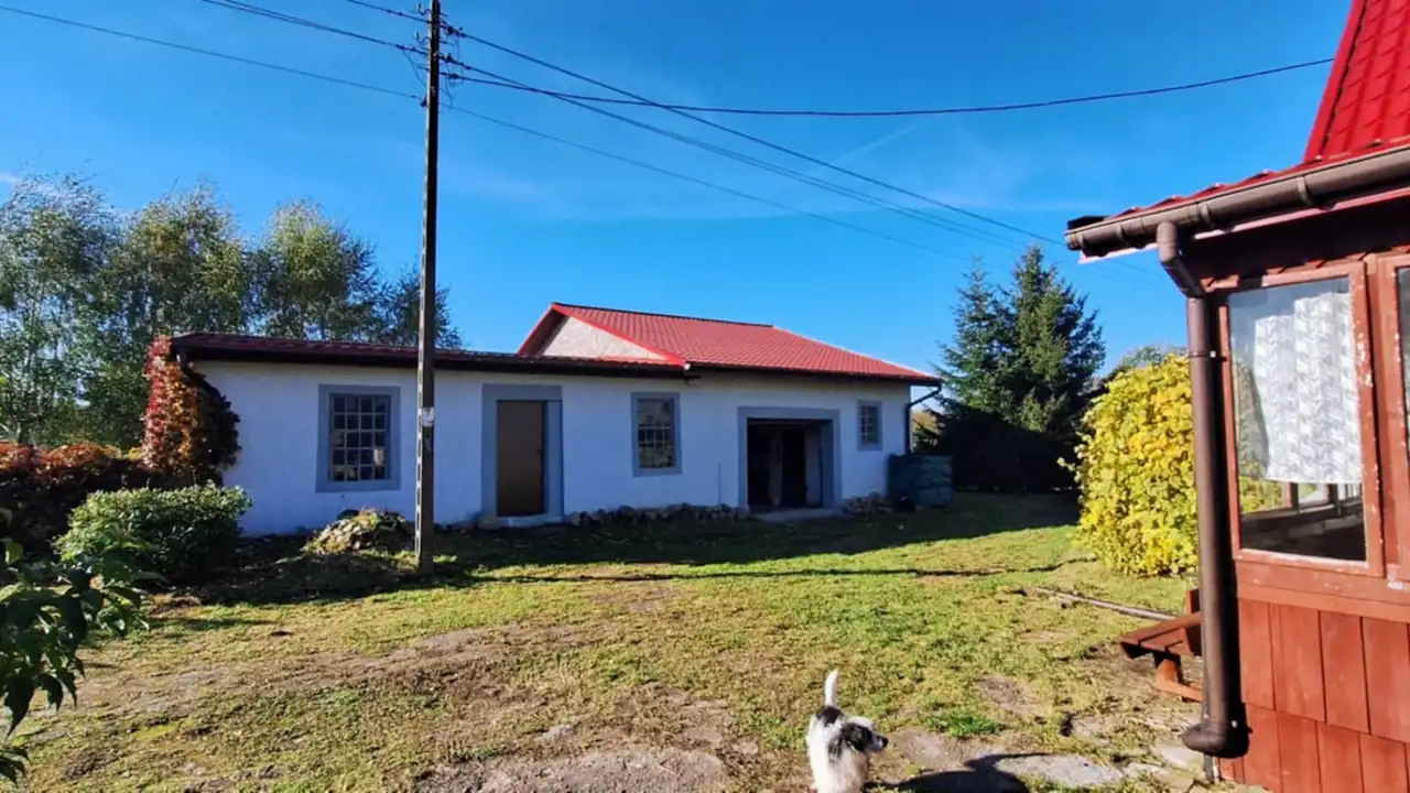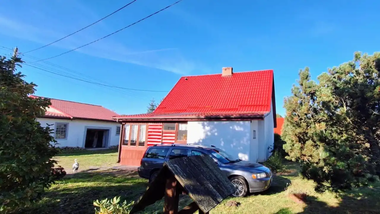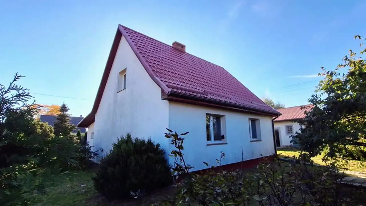 Na Sprzedaż Dom o powierzchni 110m2 ( parter - ganek, kuchnia, łazienka, dwa pokoje ). Pietro - dwa pokoje. Pod częścią domu piwnica gdzie znajduje się piec centralnego ogrzewania na drewno/ węgiel. Budynek jest ocieplony. Dodatkowo budynek gospodarczy z garażem ( około 100m2 ). Działka 4244m2 całkowicie ogrodzona. Wioska w otoczeniu pięknych lasów.