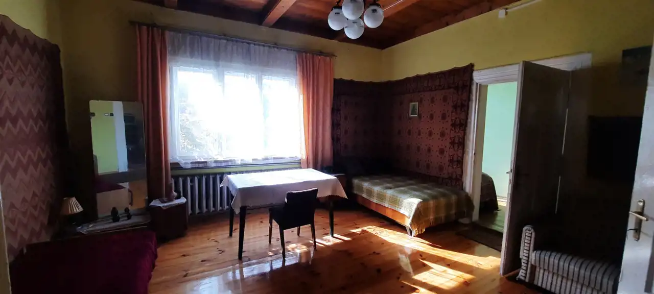 Część domu jest konstrukcji drewnianej oraz część z lat 60-tych konstrukcji murowanej, kryty dachówką cementową. Powierzchnia użytkowa budynku 215m2, całkowita 270m2. W pierwszej dwu piętrowej murowanej części z poddaszem znajduje się 5 pokoi oraz dwie łazienki.