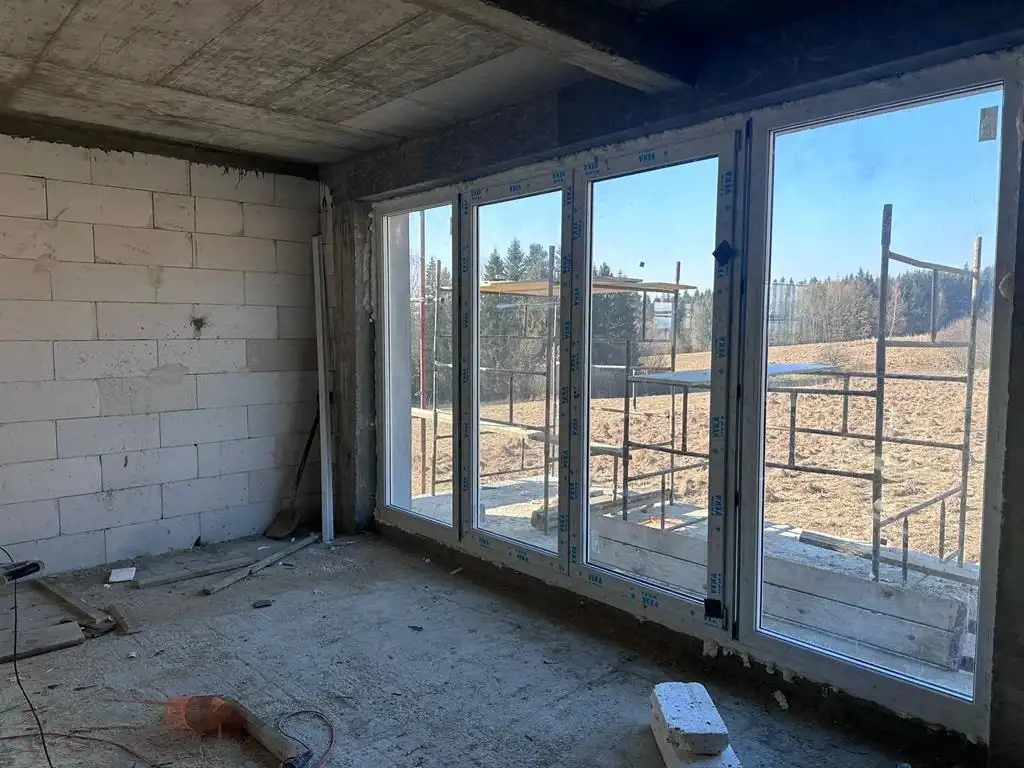 W budynku zamontowano okna trzyszybowe firmy Veka w białym kolorze.