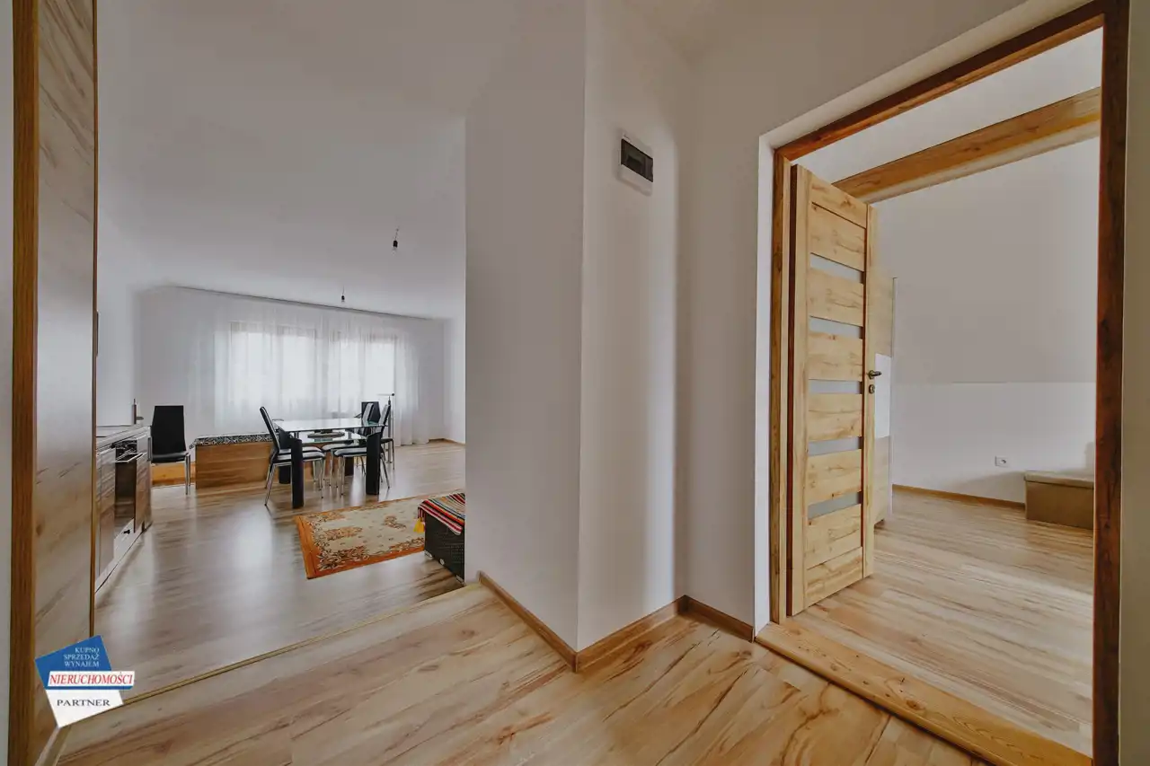 Budynek pochodzi z końca lat 60 , natomiast w 2023 roku przeszedł pełnoskalową modernizację wraz z rozbudową, dzięki której uzyskano możliwość wyodrębnienia dwóch niezależnych mieszkań, co w perspektywie dwupokoleniowej rodziny, czy działalności związanej z wynajmem daje duże pole manewru. Powierzchnia użytkowa wynosi 110 m2, całkowita około 130 m2, działka 1090 m2.