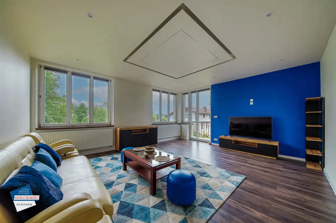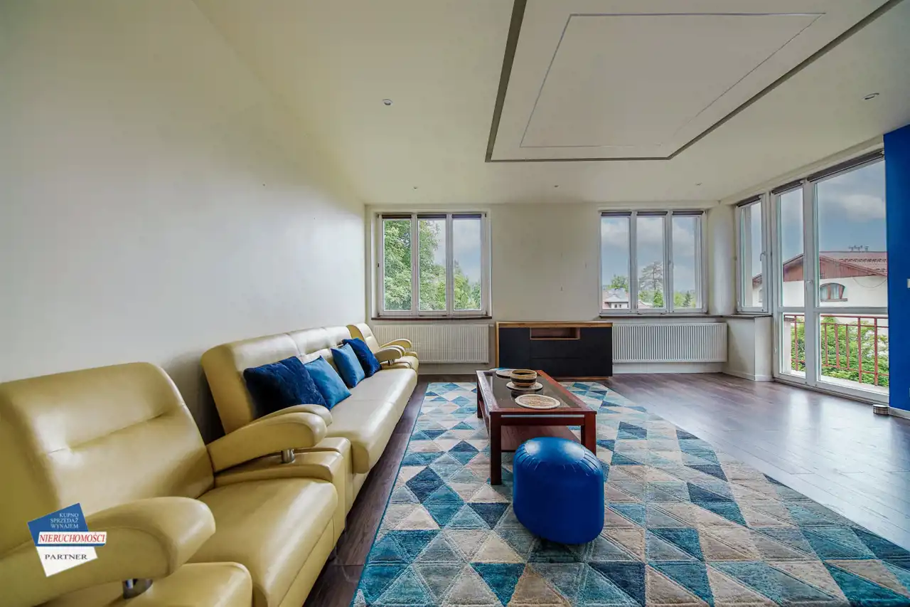 Duży imponujący salon ( 30 m2) z wyjściem na balkon o wystawie poł-zach.