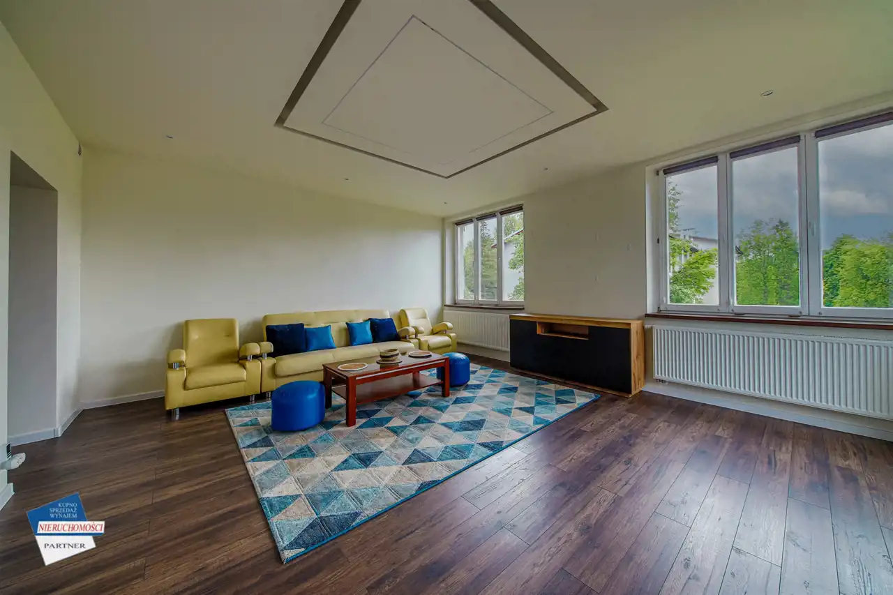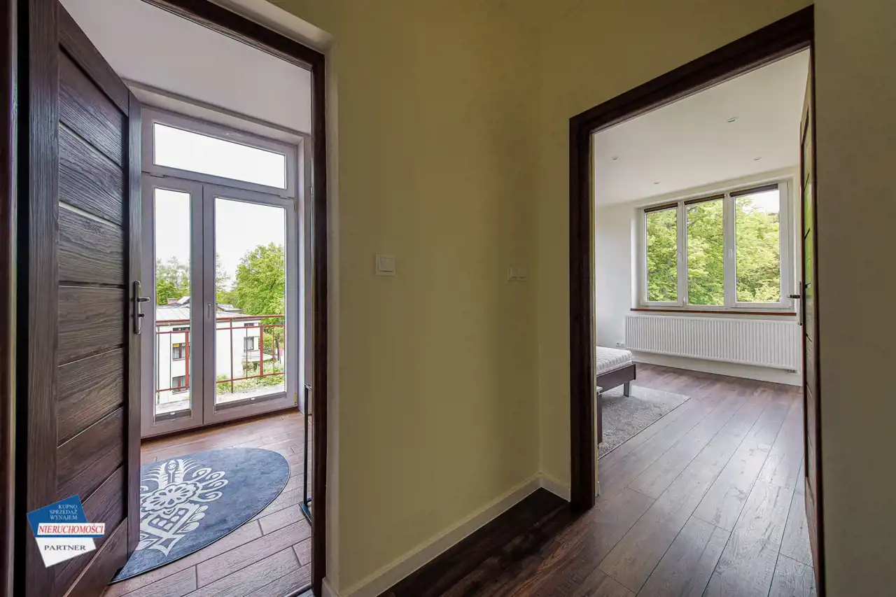 Z okien widok na park, jednocześnie bardzo dobrze doświetlone, gdzie przez duże okna „wlewa” się wszechobecna zieleń.