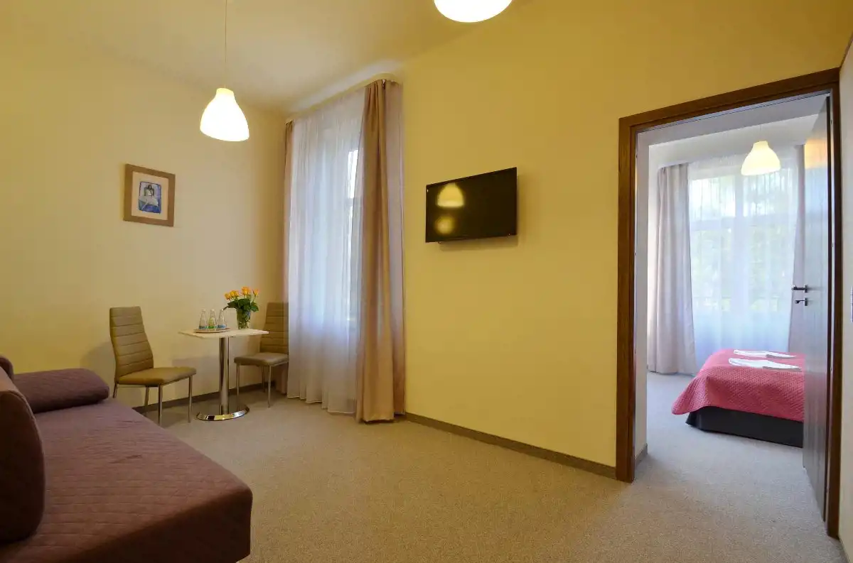 Obiekt dysponuje 50 miejsc w pokojach 1, 2, 3, 4 osobowych oraz studia i apartamenty.