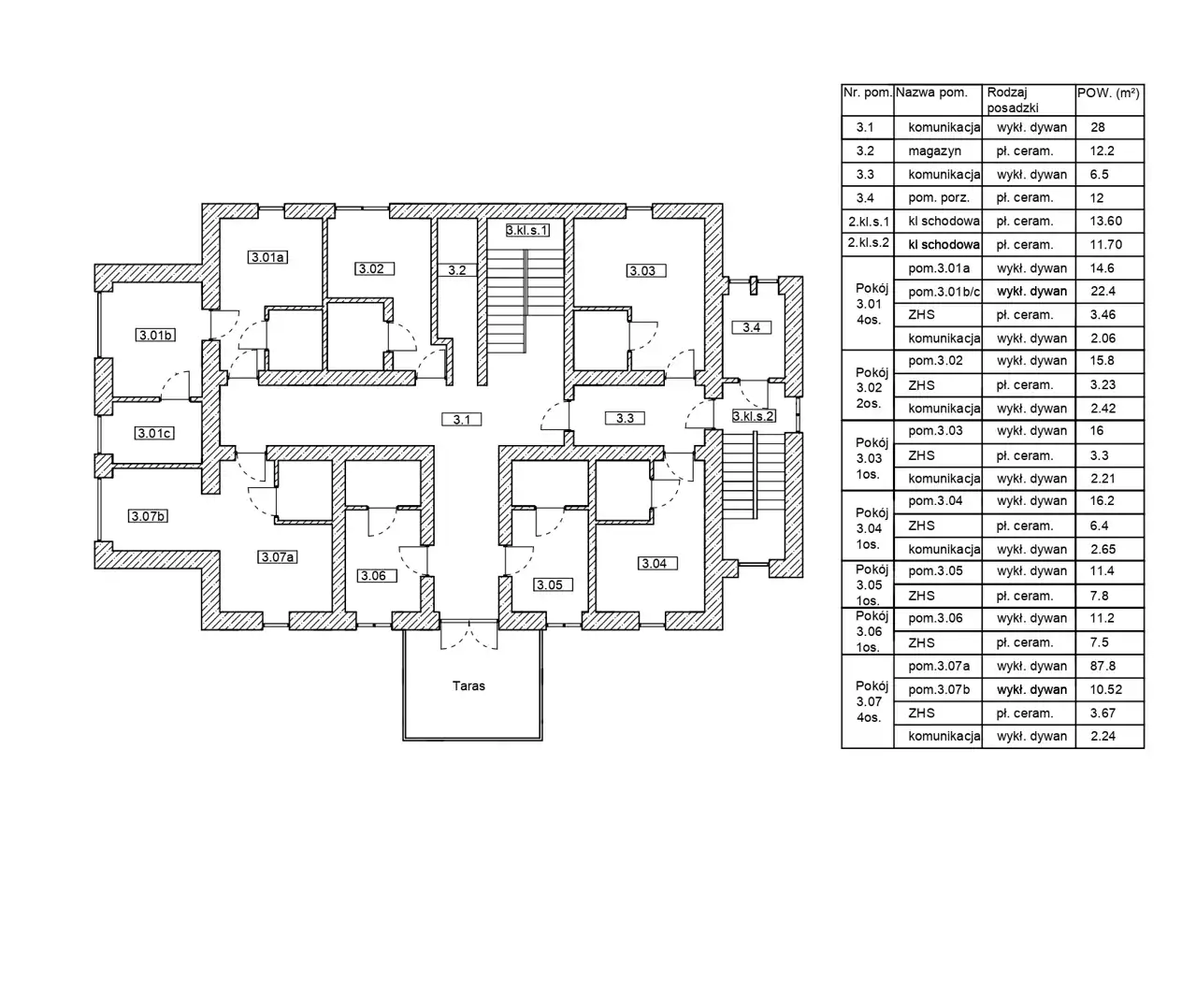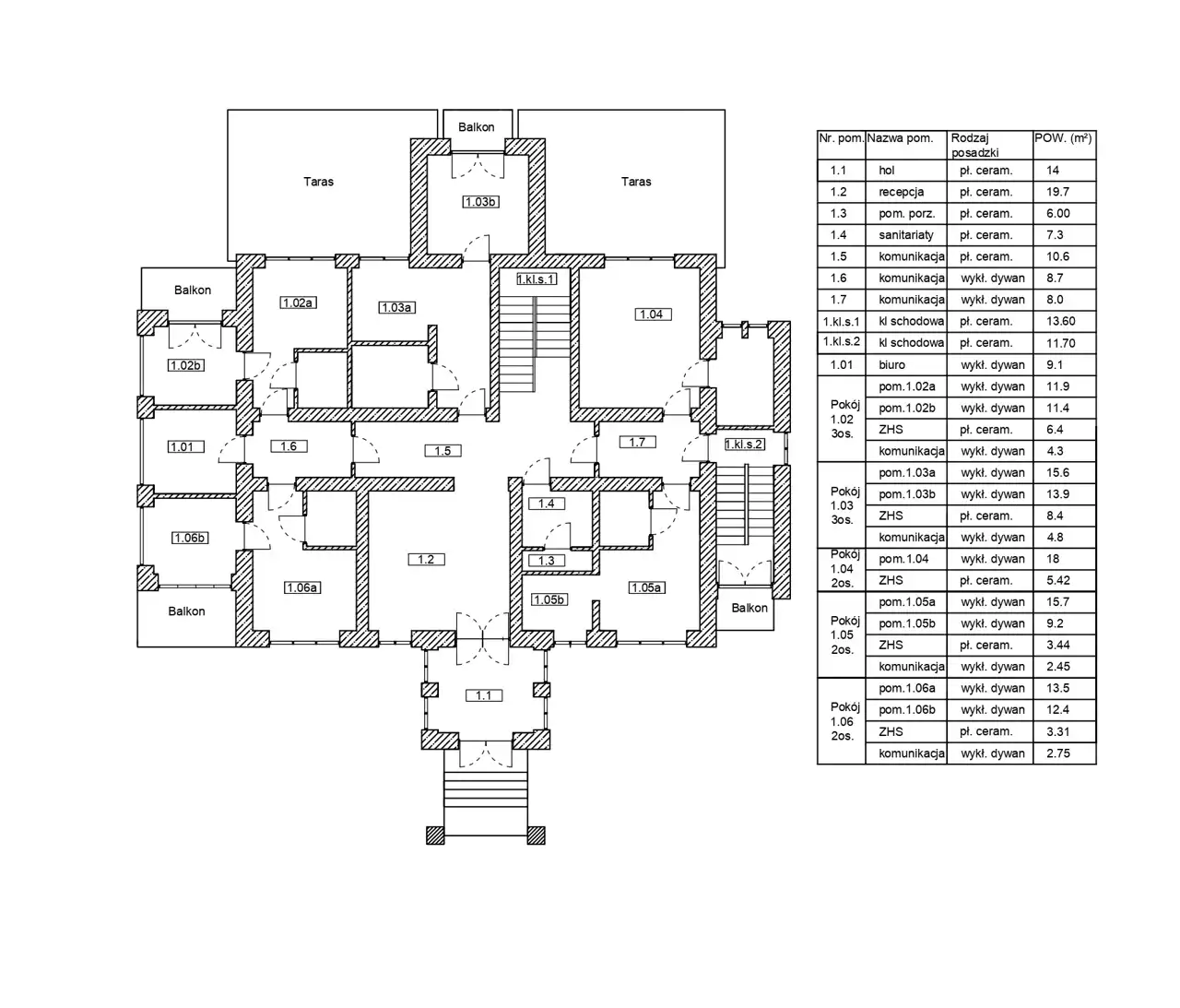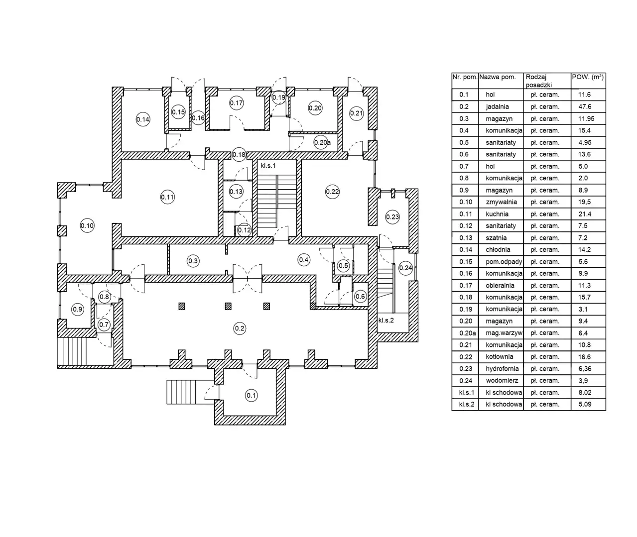 - Przyziemie 302,97 m2 ( na tej kondygnacji znajduje się kuchnia oraz stołówka )