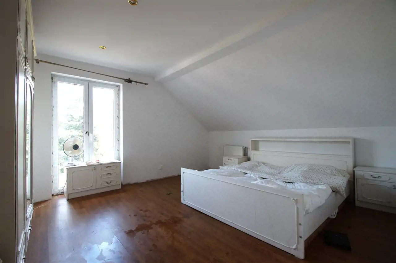Piętrowy, podpiwniczony dom o powierzchni ok 250m2 składa się z 6 pokoi, kuchni z jadalnią, dwóch łazienek i przestronnych przedpokoi. Budynek gospodarczy o powierzchni ok 25m2. Na posesji znajduje się już kilka nasadzeń drzewek owocowych, świerki.