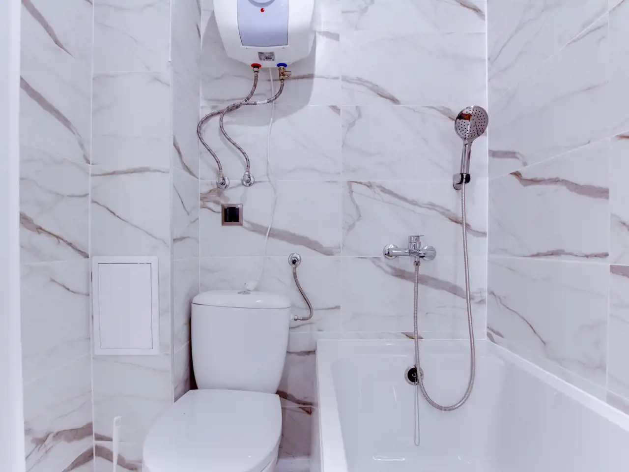 - Media Ogrzewanie: C.O. miejskie; Woda: ciepła - bojler lub ogrzewacz przepł.; Gaz: jest