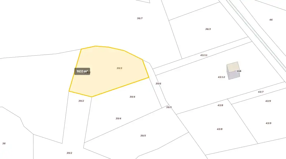 Działka widokowa o powierzchni 1635 m2, działka o nieregularnym kształcie zbliżonym do kwadratu o wymiarach około 40x47 m