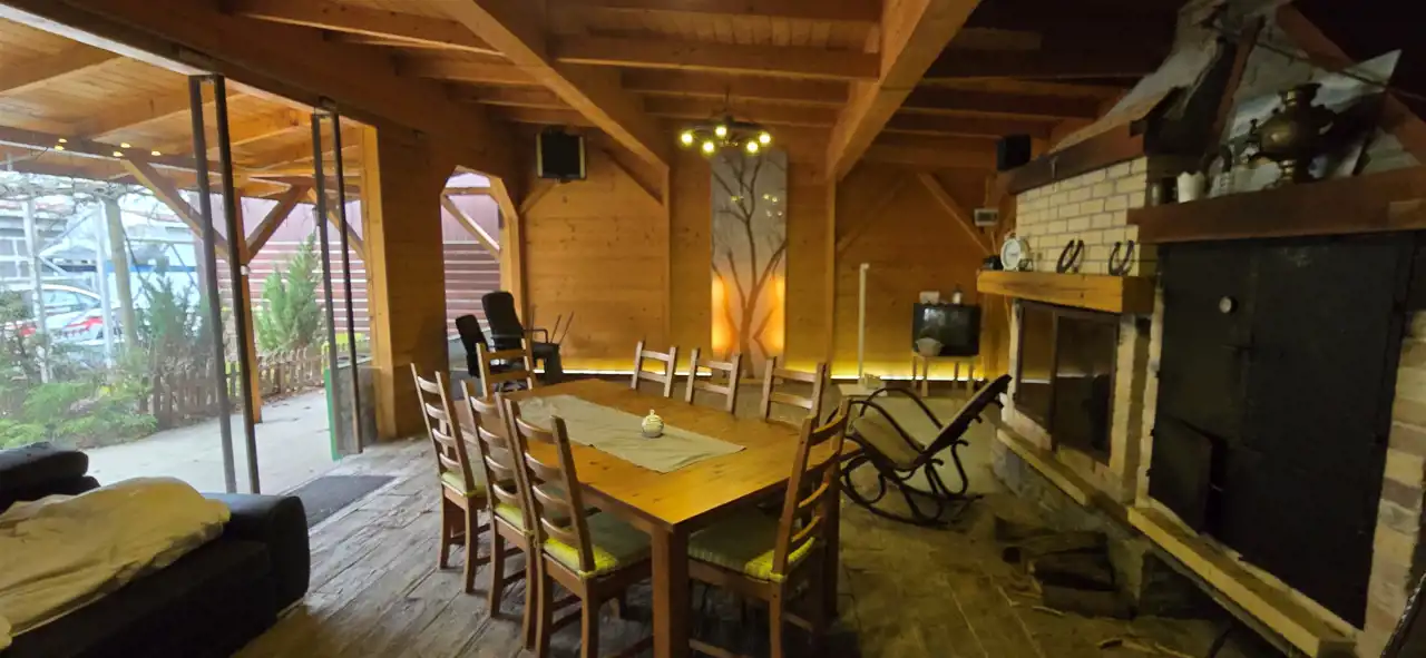 • Domek „kominkowy” z zapleczem kuchennym i wędzarnią