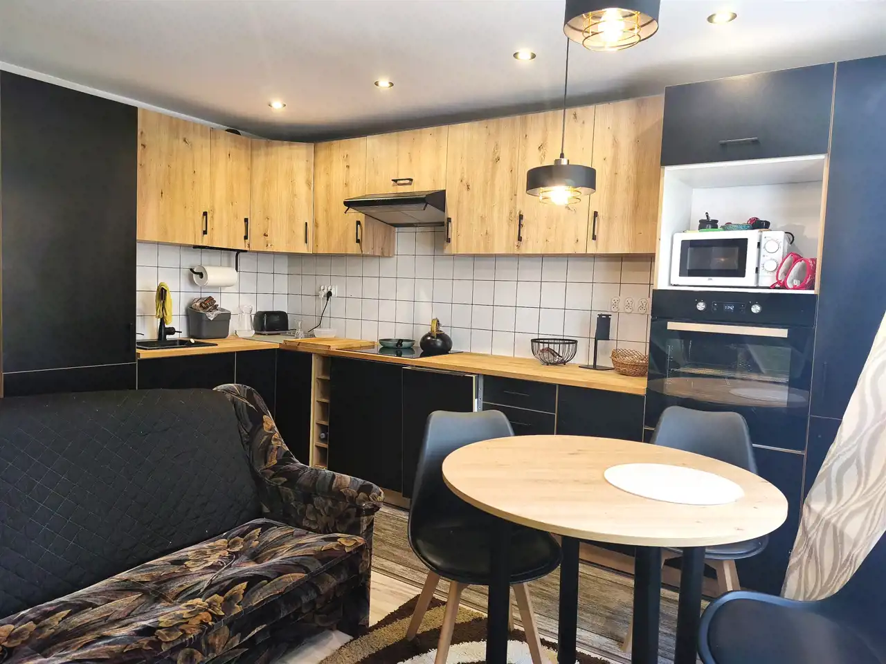 * salon z aneksem kuchennym - idealna przestrzeń do wspólnego spędzania czasu,