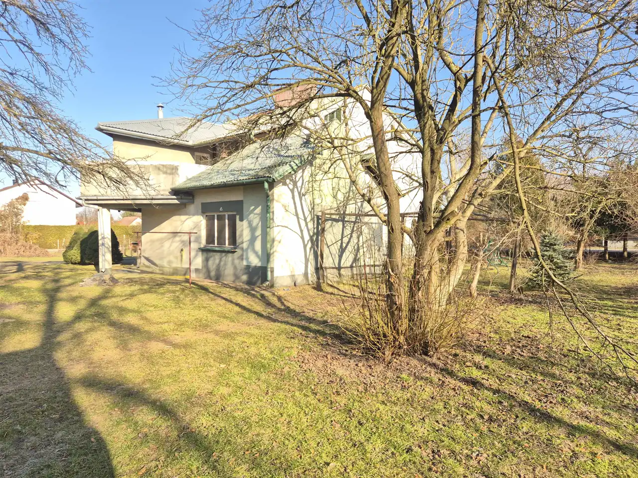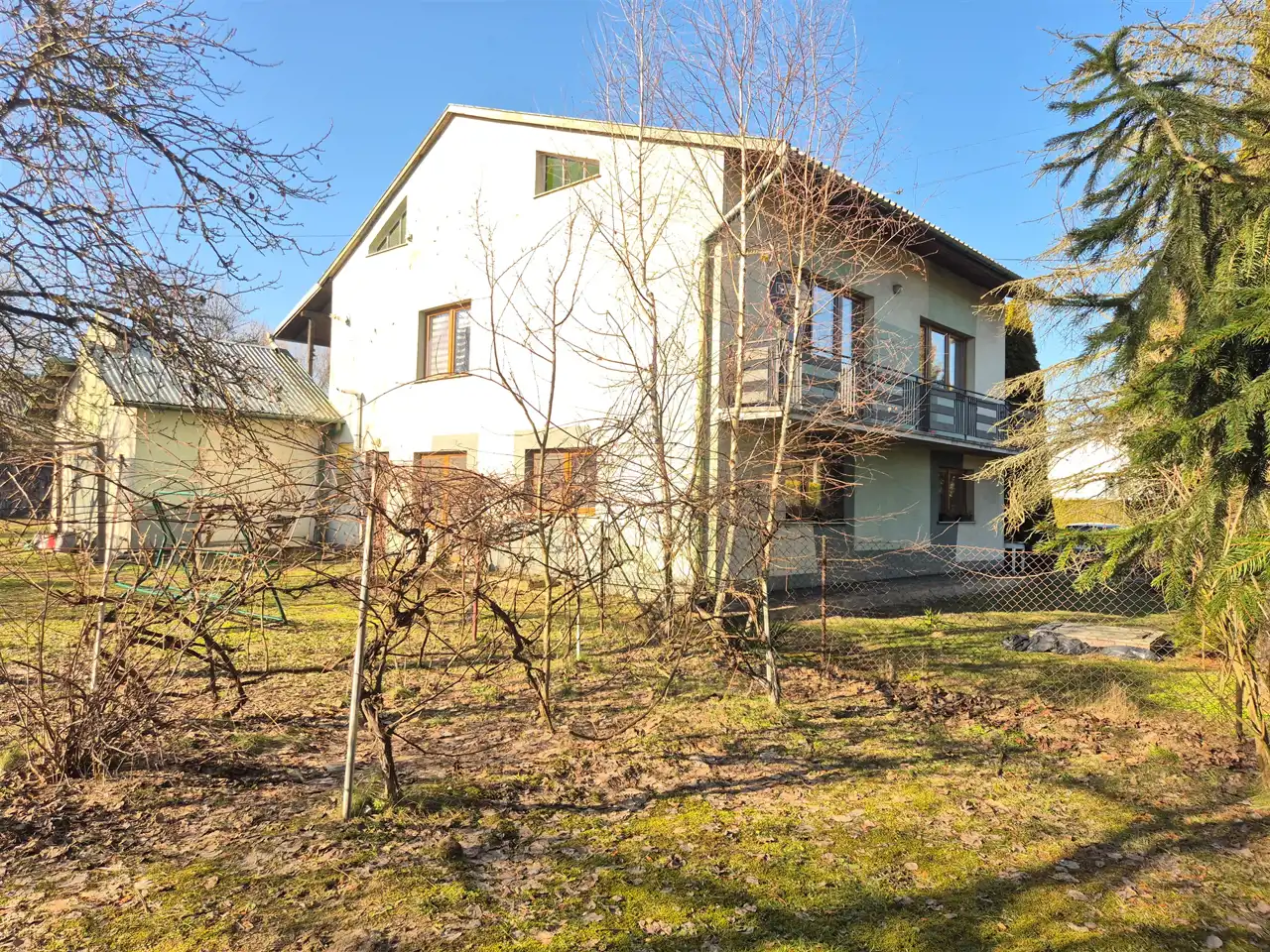 Budynek z lat 90. o powierzchni całkowitej ok. 200 m² użytkowej 166 m² został zaprojektowany w sposób umożliwiający komfortowe zamieszkanie dwóm niezależnym rodzinom. Nieruchomość posiada dwa oddzielne wejścia - na parter oraz piętro, co zapewnia prywatność i funkcjonalność.