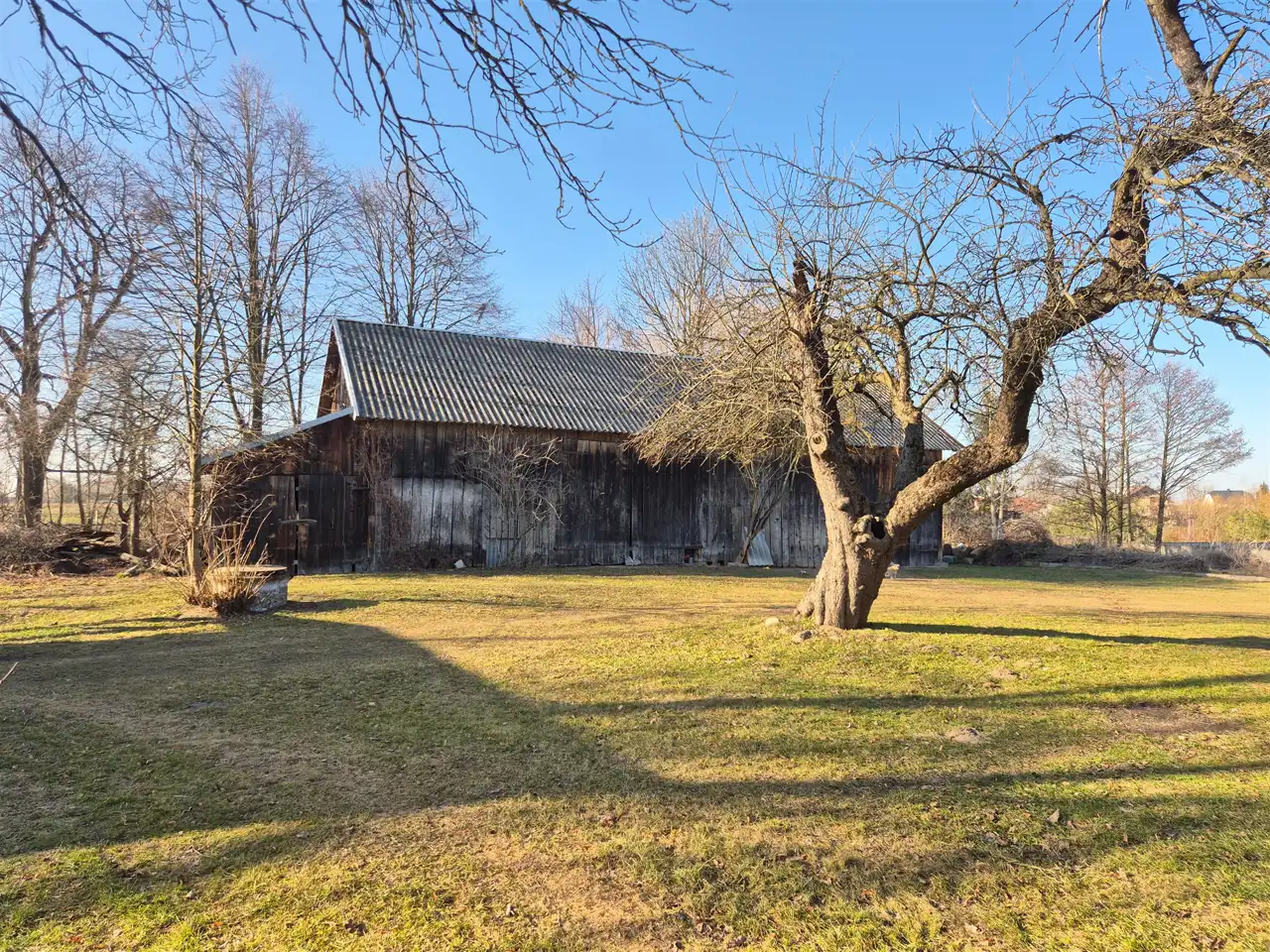duża drewniana stodoła kryta eternitem o powierzchni ok. 180 m²