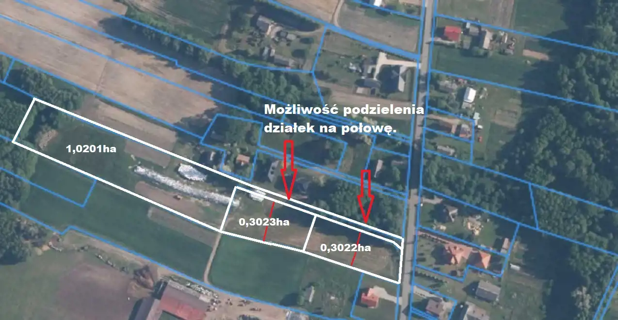 - Działka 0,3023ha - drugi pas zabudowy - szerokość od drogi wewnętrznej ok.76,5m, długość ok.34,5m i ok.44m. Klasa gruntu: RV, PsV. Cena: 121.000zł.