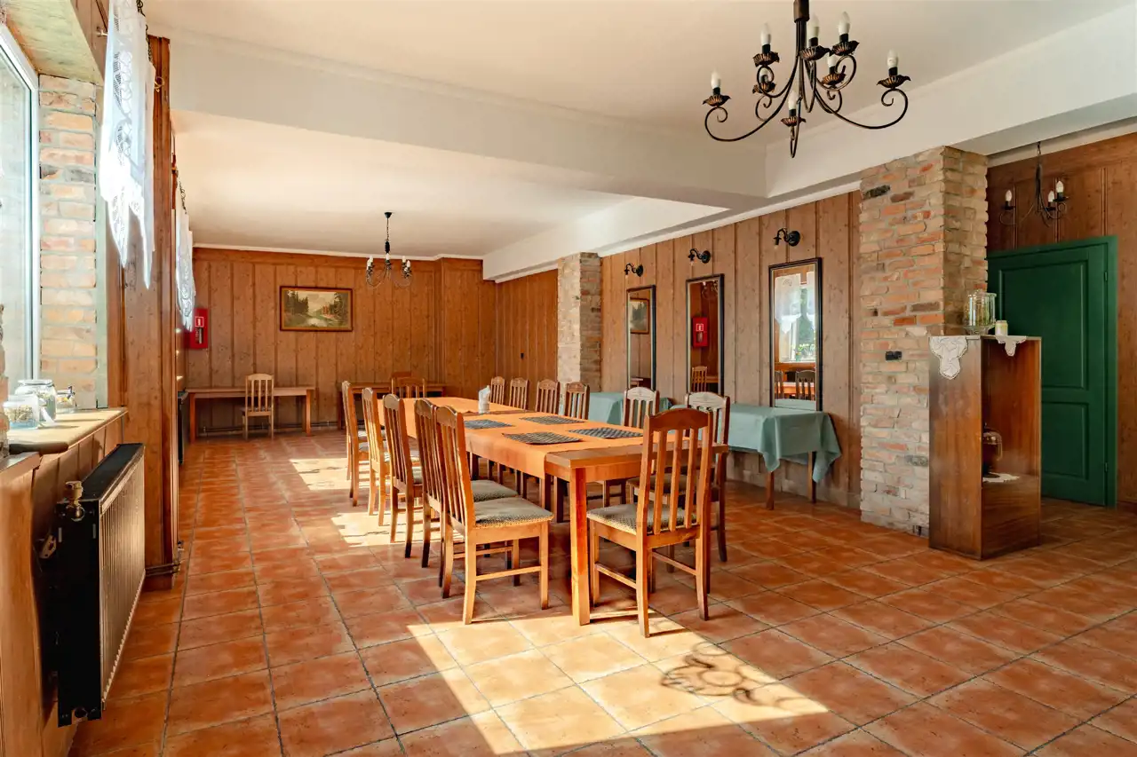 Nieruchomość o łącznej powierzchni zabudowy ok. 700 m² (w tym ok. 400 m² części noclegowej oraz 300 m² części restauracyjnej) stanowi doskonałą propozycję dla inwestora poszukującego gotowej bazy pod pensjonat, dom spokojnej starości, agroturystykę lub kameralny ośrodek wypoczynkowy.