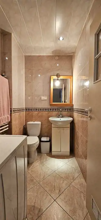 - Na podłogach znajdują się panele, płytki, parkiet oraz wylewka z gumolitem, co daje możliwość łatwej modernizacji według własnego stylu.