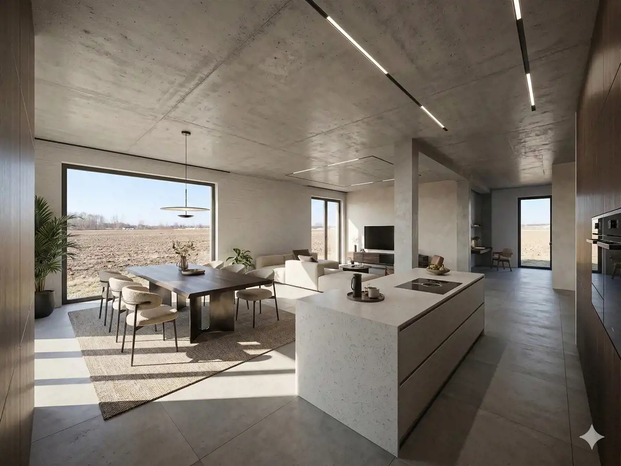 Budynek został wykonany z gazobetonu, ze stropem oraz dużymi nowoczesnymi przeszkleniami okiennymi, które podkreślają współczesny charakter domu i zapewniają dużo naturalnego światła.