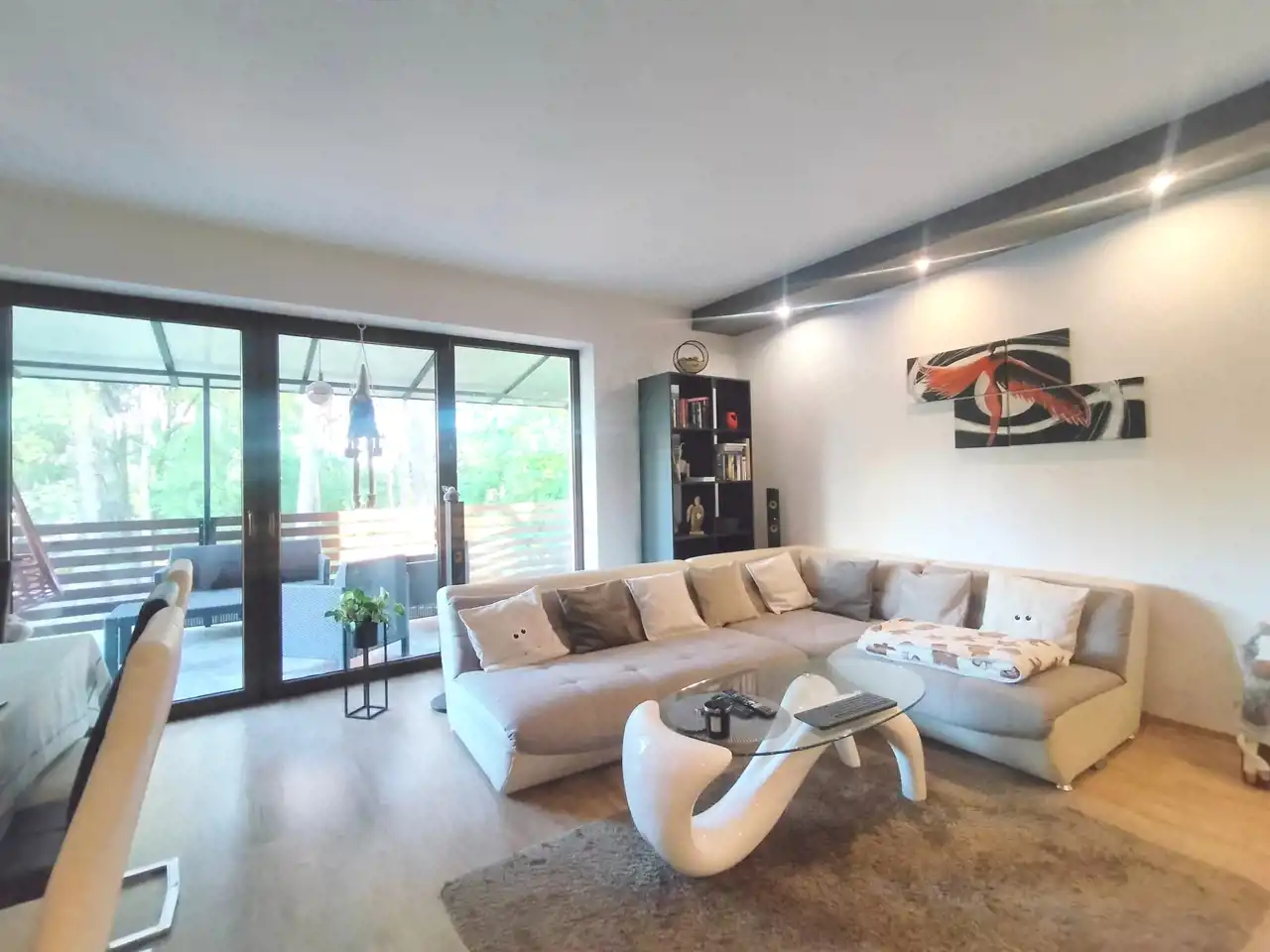 • Przestronny salon z wyjściem na taras, idealny na poranną kawę wśród zieleni
