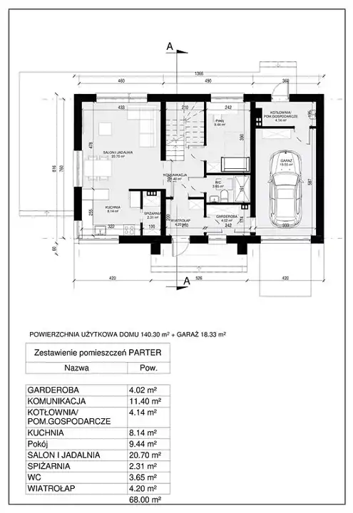 Dom został wykonany z wysokiej jakości ceramiki Porotherm i ocieplony 20-centymetrowym styropianem grafitowym.