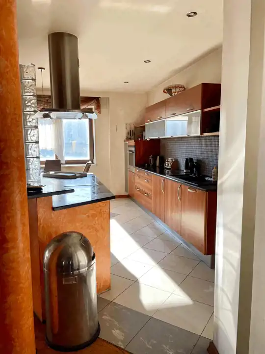 - Kuchnia połączona z jadalnią i dużym salonem z kominkiem