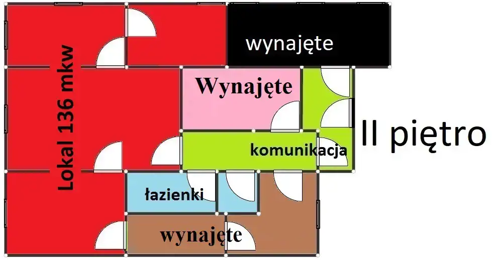 Elegancki lokal nr. 2 (czerwony) na II piętrze w kamienicy w całości wykorzystywanej na cele biurowe.