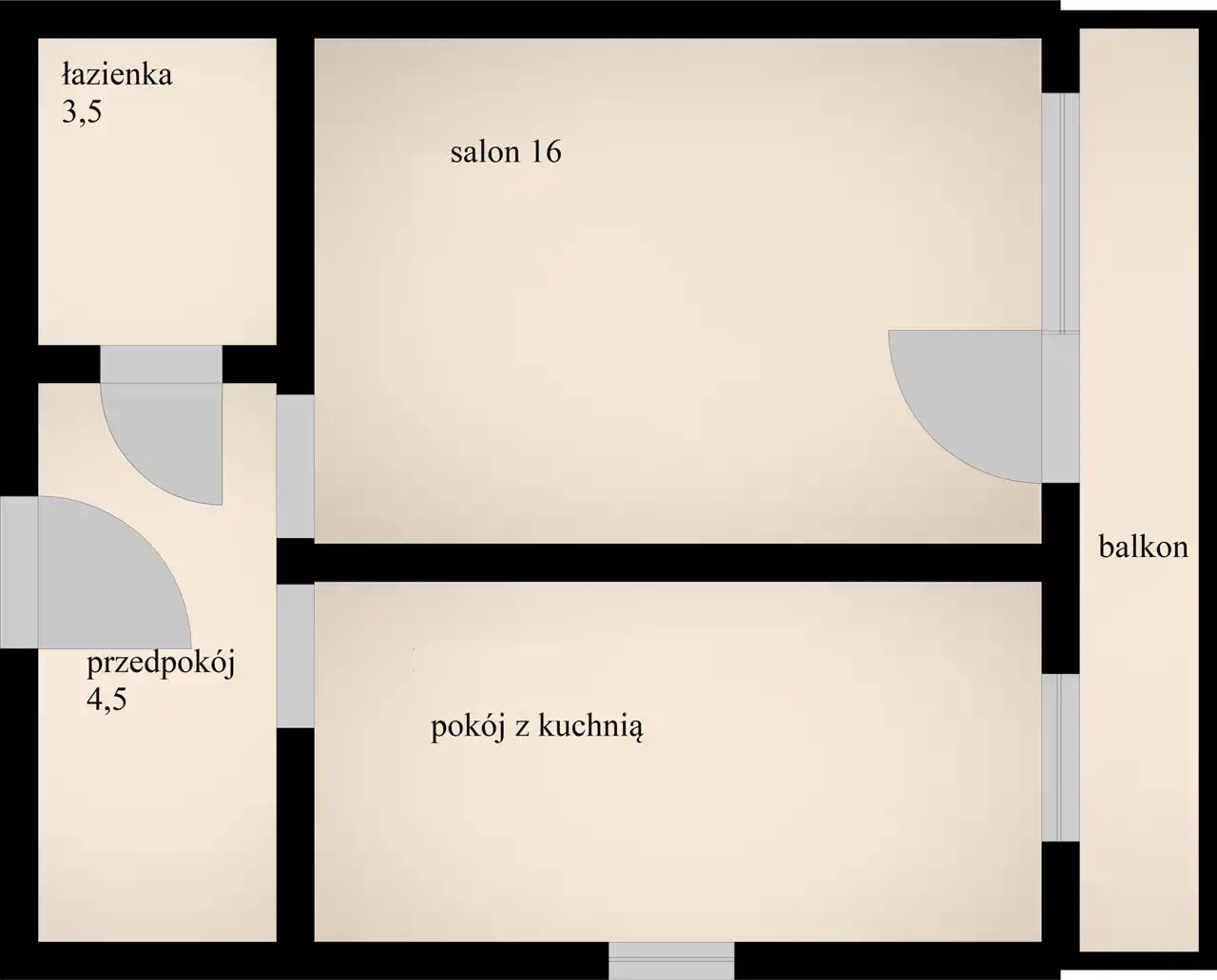 Przestronny Salon (16 mkw.) – z wyjściem na duży balkon, idealny jako strefa dzienna.
