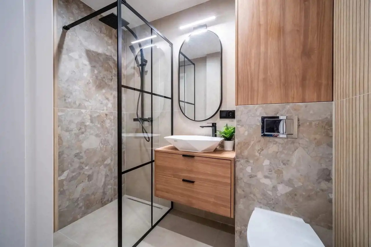 nowoczesną łazienkę z WC,