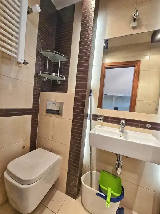 Kuchnia: W pełni wyposażona (lodówka, piekarnik, płyta indukcyjna, zlewozmywak).