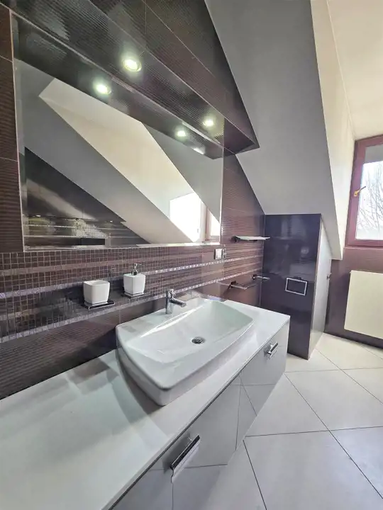 Nieruchomość jest utrzymana w bardzo dobrym stanie, łącząc klasyczny klimat z nowoczesnymi udogodnieniami: