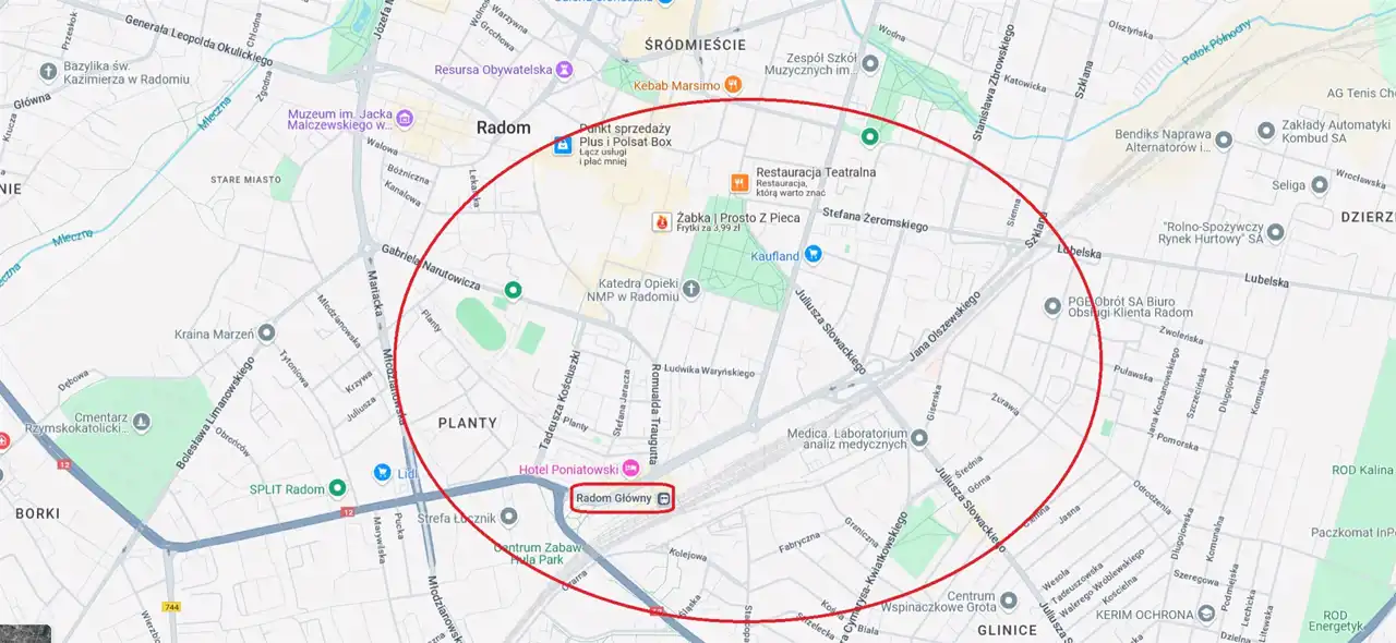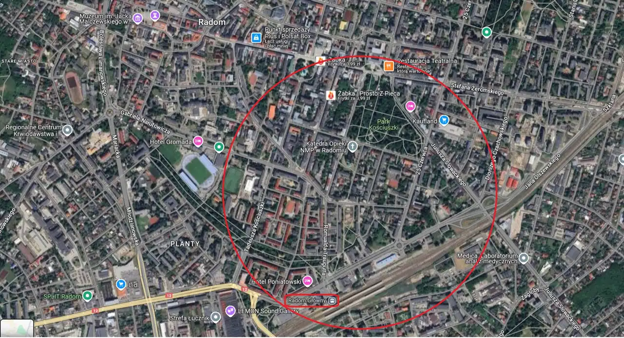 Do stacji Radom Główny 900m (!!!). Park Kościuszki - 100m