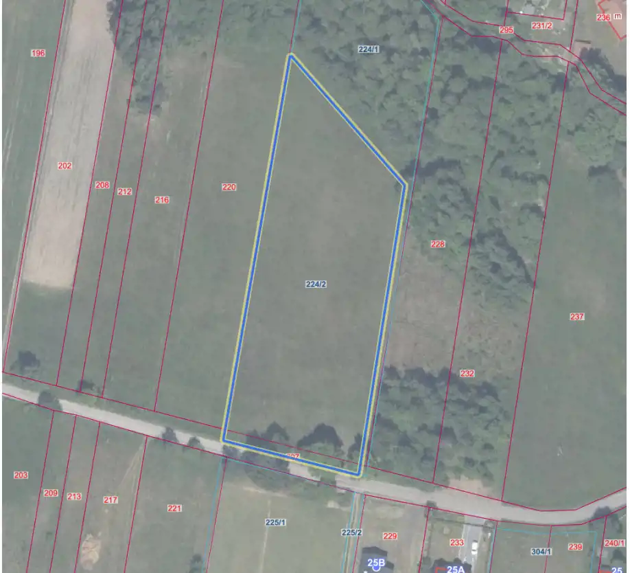 224/2 — ok. 5127 m2 (0.5127 ha)- z wydanymi Warunkami zabudowy na budynek jednorodzinny z poddaszem użytkowym