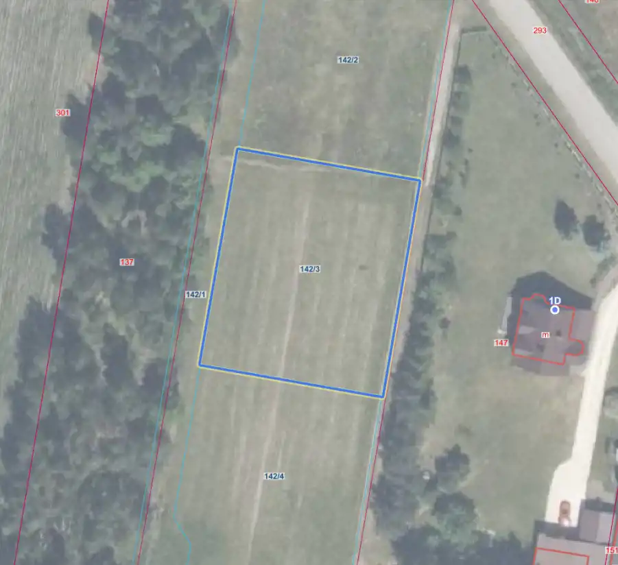 142/2 — ok. 1834 m2 (0.1834 ha)- w trakcie wydania Warunków zabudowy na budynek jednorodzinny